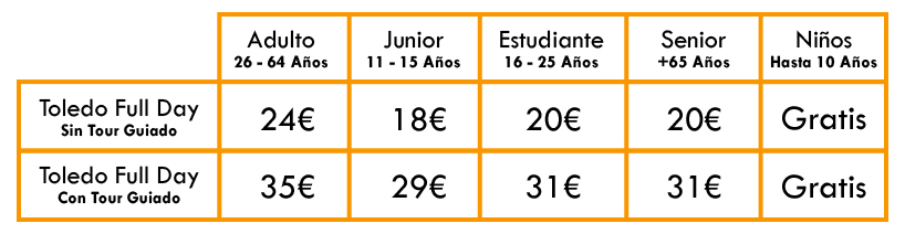 COSTOS Y CONDICIONES DEL TOLEDO FULL DAY